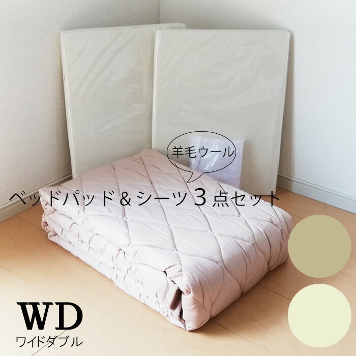 【ベッドメーキング】ワイドダブルロング 羊毛ウールベッドパット シーツ三点セット シーツ2枚セット 布団カバーセット マットレスカバー 寝装品 敷布 洗濯可能 ウォッシャブル おすすめ 日本製寝具 送料無料