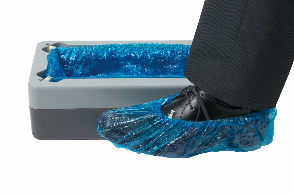 ワンタッチでシューズカバー取り付け!手を汚さず衛生的に使えるシューズカバーディスペンサ ●踏むだけワンタッチでシューズカバーを取り付けることのできます。