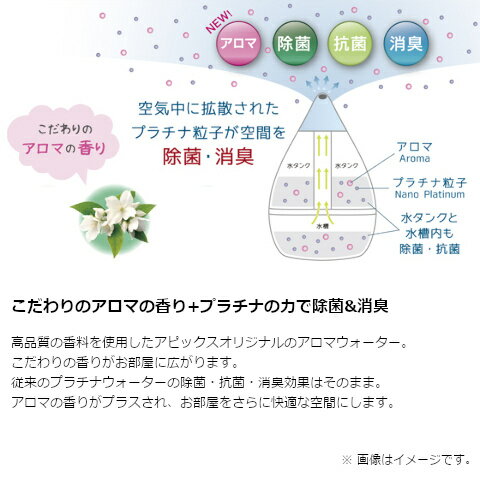 こだわりの香り+プラチナの力で除菌&消臭高品質の香料を使用したアピックスオリジナルのアロマウォーター。